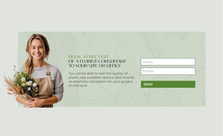 You will be able to test the quality of plants, see available options and receive an estimate calculation for your project on the spot