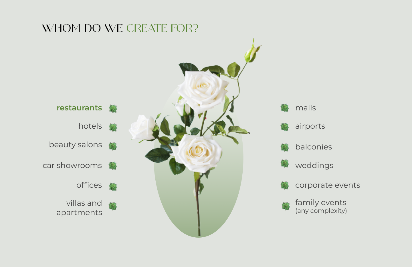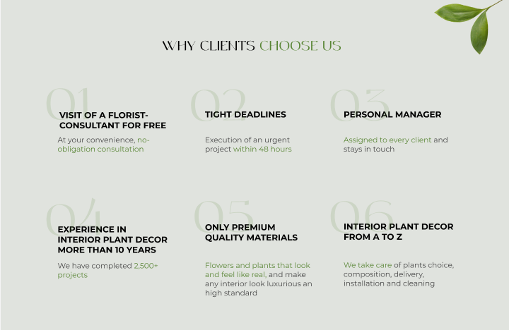 Absolute imitation of real plants and flowers that make the interior look fresh and expensive;